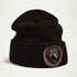 Die Mütze Demby in Schwarz. Halte deinen Kopf kuschelig warm und bleibe trotzdem cool in dieser Saison. Sie ist aus einem leichten Rippstoff gefertigt und mit unserer charakteristischen Aufnäher-Stickerei auf der Vorderseite versehen.